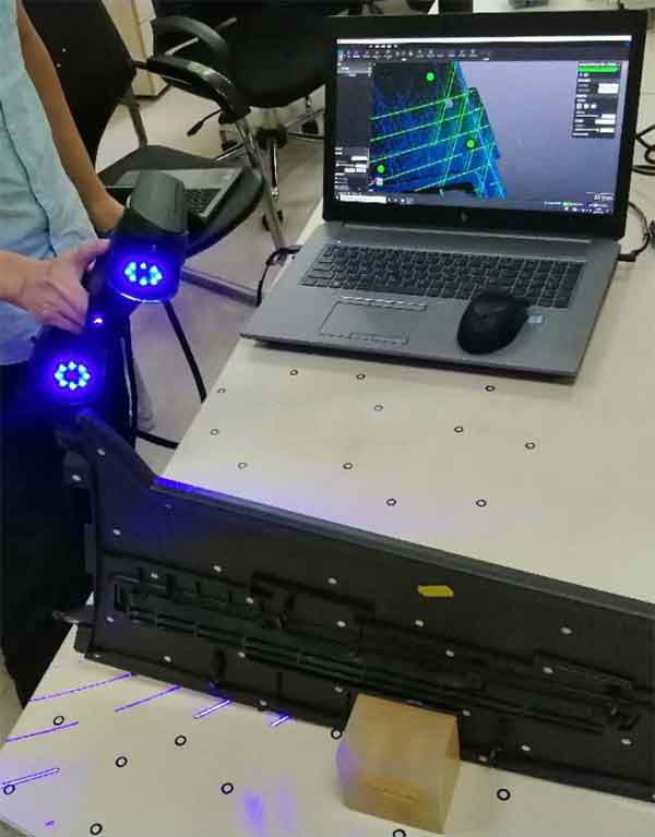 初次掃描耗時10分鐘,通過與原有測量技術檢測的數據結果比較,此檢測方案的檢測結果誤差值在0.02mm內,滿足客戶要求。在汽車配件改裝中,尺寸精度是影響產品質量的重要因素,高精度的三維掃描設備是數據精確采集的保障。并且提高檢測效率能縮短汽車改裝周期。